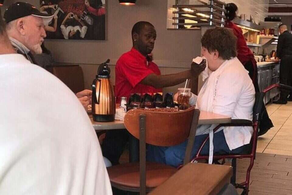 קישה כתבה: "היום הייתי עדה לרגע נוגע ללב, שבו היה מעורב עובד שלכם. גבר ואשתו הנכה אכלו יחד במסעדה, והעובד שלכם ניגש לשבת איתם, ועזר לאיזה לאכול בזמן שבעלה נהנה מהמנה שלו. האמונה שלי במין האנושי התחזקה קצת היום".