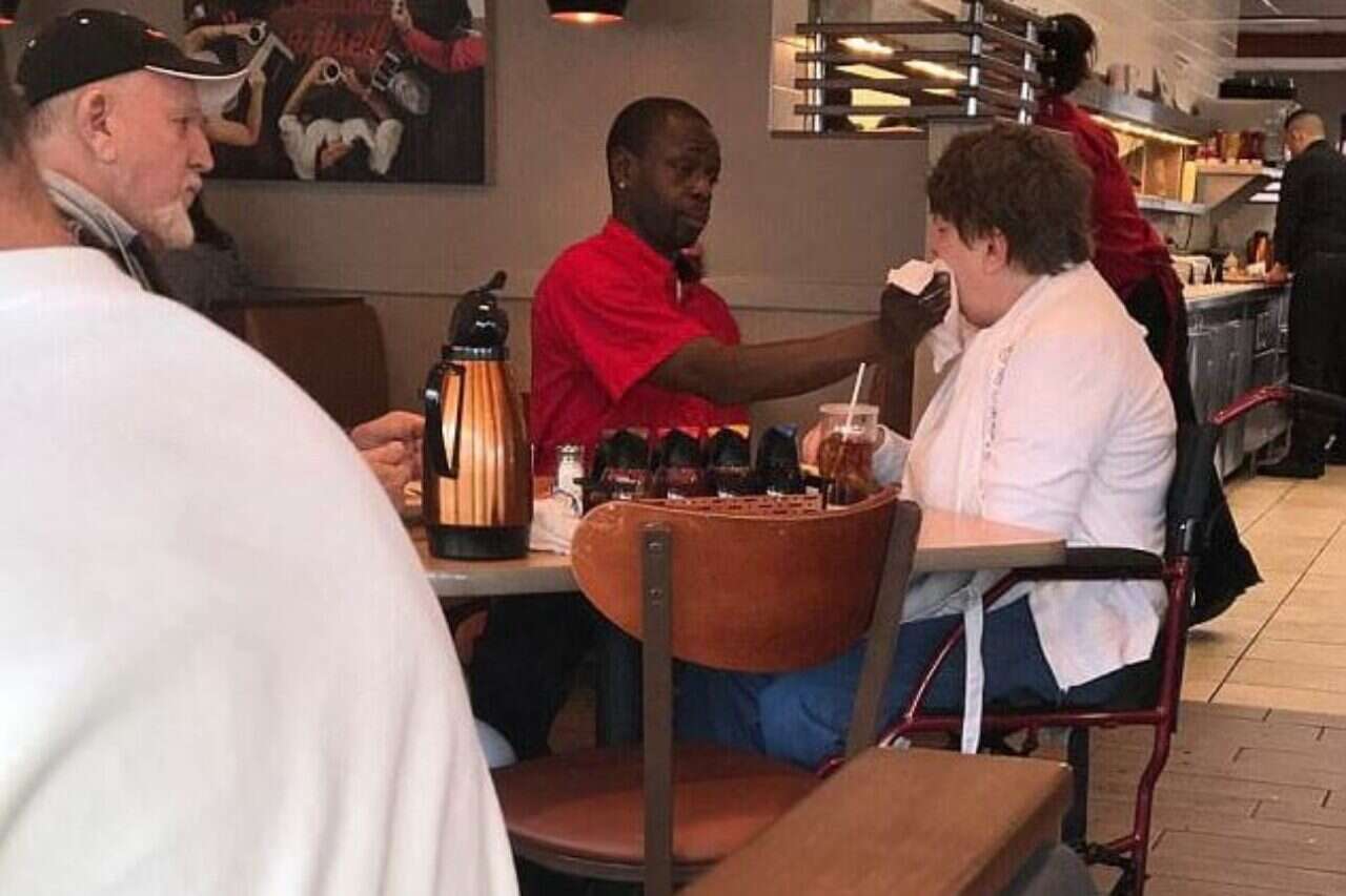 קישה כתבה: "היום הייתי עדה לרגע נוגע ללב, שבו היה מעורב עובד שלכם. גבר ואשתו הנכה אכלו יחד במסעדה, והעובד שלכם ניגש לשבת איתם, ועזר לאיזה לאכול בזמן שבעלה נהנה מהמנה שלו. האמונה שלי במין האנושי התחזקה קצת היום".