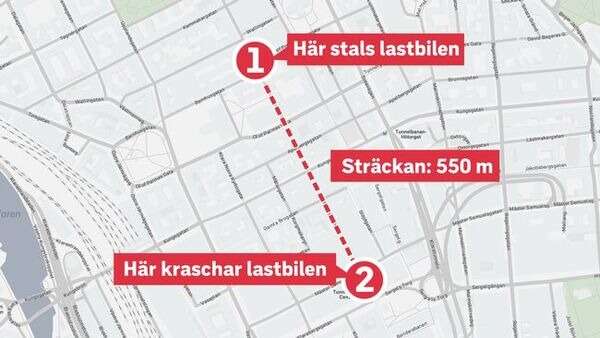 ביום הפיגוע הגיע החשוד בצהרים לרחוב אולף פאלמה, עם מטען נפץ מאולתר, וכאשר נהג משאית הבירה נכנס למסעדה לפרוק סחורה, התגנב לתא הנהג, התניע ונסע עם המשאית הגנובה לכיוון הרחוב הראשי. לאחר כחצי קילומטר, האיץ לפתע, נכנס למדרחוב שהיה הומה אדם, דרס את האנשים שהיו בדרכו, והמשיך עד שהמשאית נתקעה בחלון הראווה של בית הכלבו הענקי אוליאנס. הוא ניסה להפעיל את מטען הנפץ, שלמרבה המזל לא פעל, וקפץ מתא הנהג לתוך החנות.