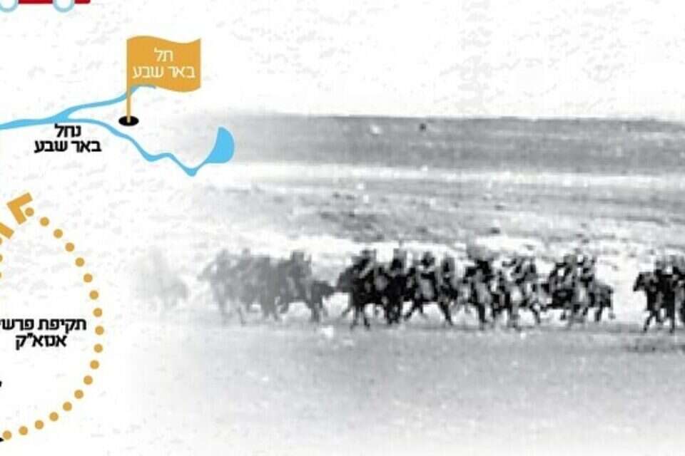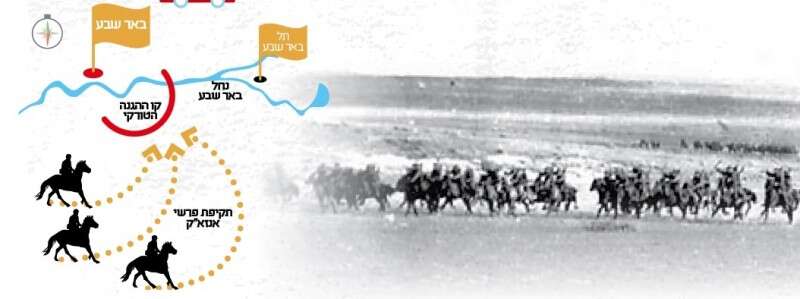הסתערות פרשי כוחות אנזא"ק ומפת הקרב על באר שבע // צילום: מתוך ויקיפדיה