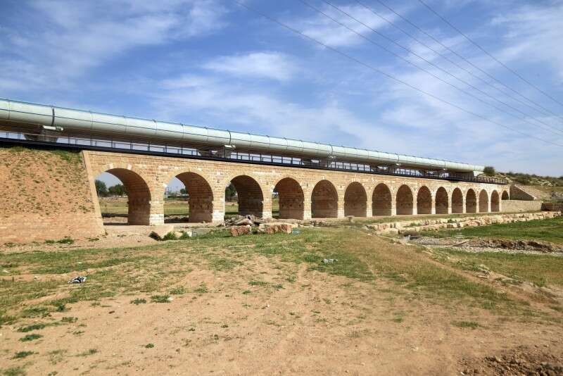 גשר הרכבת העות'מאנית בנחל באר שבע. מעליו: הגשר החדש שהוקם במקום // צילום: דודו גרינשפן