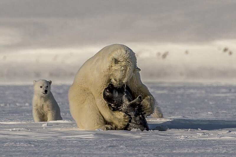 דוב קוטב לוכד כלב ים בקוטב הצפוני // צילום: עמוס נחום