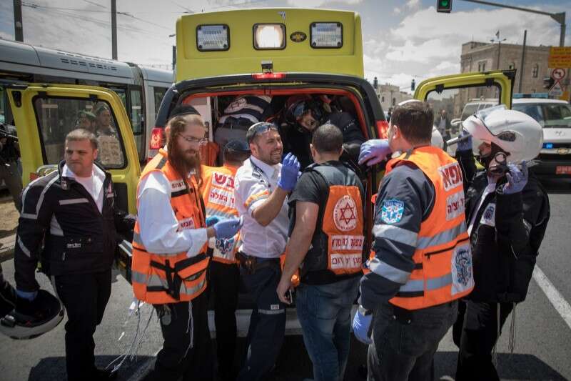 זאבי הנפלינג, חובש רפואת חירום על אופנוע מד"א שהגיע ראשון, למקום: "במקום הייתה המולה גדולה, שוטרים שהיו במקום הובילו אותי לתוך הרכבת שם שכבה צעירה בשנות ה-20 כשהיא מחוסרת הכרה עם פצעי דקירה בפלג גופה העליון, הענקתי לה טיפול רפואי ראשוני מציל חיים וביצעתי פעולות החייאה. מיד הגיעו צוות ניידת טיפול נמרץ שלנו שהמשיכו בפעולות החייאה מתקדמות שמצבה אנוש. טיפלנו גם גבר בשנות ה-50 ואישה בהריון בשנות ה-30, שנחבלו במהלך האירוע ופינינו אותם לבית החולים שמצבם מוגדר קל".