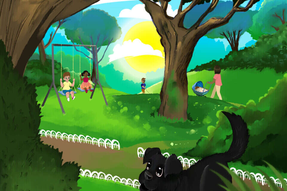 "היום זה היום הראשון שארתור הולך לטייל בחוץ הכלב ארתור השחור, כבר בן חודשיים ועדיין גור אך הגיע הזמן שיצא קצת לשחק בפארק, אולי אפילו עם כדור הב הב, נובח ארתור בפארק הגדול בחיוך רחב הוא מקבל את פניו של חבר חדש, אוּרי החרגול כל כך הרבה עצים ירוקים והמון ציפורים הוא מתרגש כשהוא שומע את הציוצים"