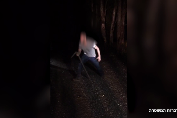 שוטרים שהוזעקו למקום לקיבוץ החלו לבצע סריקות בחורש ולאחר זמן קצר שמעו מתוך החשיכה צעקות "fire". כשהאירו באמצעות פנסים לעבר הכיוון ממנו נשמעו הצעקות, הבחינו בגבר האוחז מוט ברזל נע לכיוונם כשהוא צועק "fire" ונראה במצב נפשי מעורער, כך לטענת המשטרה.