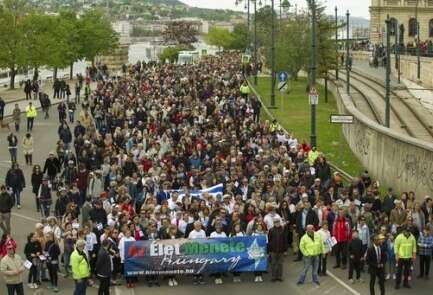 Thousands of Hungarians took part this week in a march remembering the 550,000 Hungarian Jews who died during the Holocaust. The March of the Living on Sunday was held on Hungary's national Holocaust Memorial Day, which marks the mass detention and deportation of Hungary's Jews in 1944. Speakers called for tolerance and facing up to the truth. Hungarian Jewish writer Gabor Szanto said: "No nation bears collective guilt for the past, but we all have a personal responsibility for the present and the future." This was the 15th year the march has been held. Near the end of the event, amateur runner Peter Hajdu began an eight-day run covering 420 kilometers (260 miles) to Auschwitz, Poland. Many of Hungary's Jews who died during the Holocaust perished at the Nazi death camp in Auschwitz.