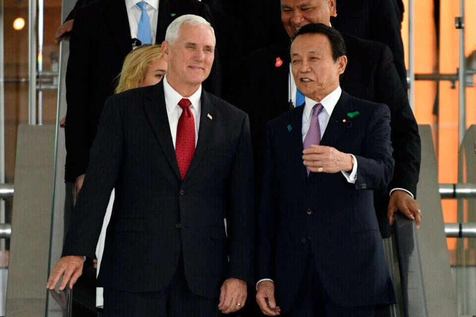 ראש ממשלת יפן עם מייק פנס // צילום: אי.אף.פי // ראש ממשלת יפן עם מייק פנס // צילום: אי.אף.פי
