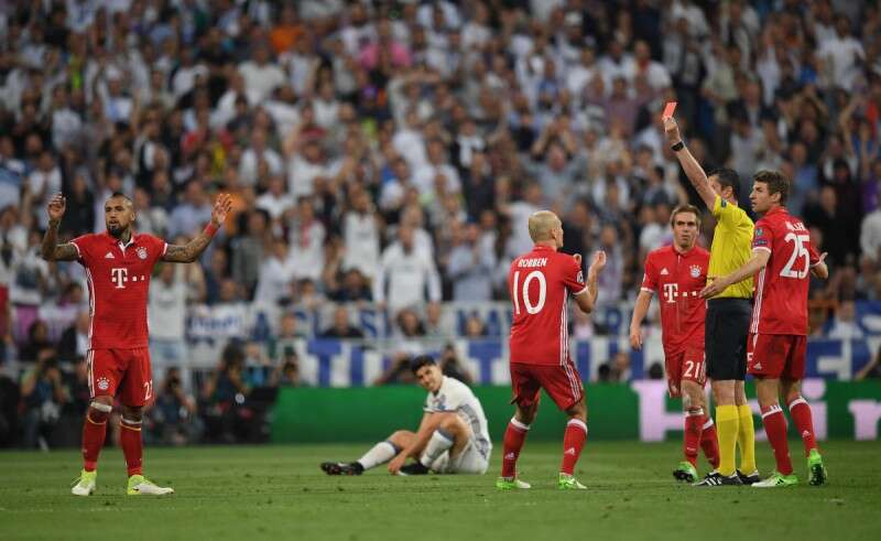 ריאל מדריד עלתה אתמול לחצי גמר ליגת האלופות אחרי 2:4 על באיירן מינכן ו-3:6 בסיכום שני המפגשים. כריסטיאנו רונאלדו חגג ערב נהדר עם שלושער שהעלתה את מאזנו ל-100 שערים בליגת האלופות, אך שניים מהם נכבשו מעמדת נבדל. במדריד כמובן היללו את הכוכב הפורטוגלי בעוד בגרמניה מוחים על תצוגת השיפוט המחפירה (כולל כרטיס אדום לא מוצדק לווידאל), שעלתה להם בהדחה מהמפעל.