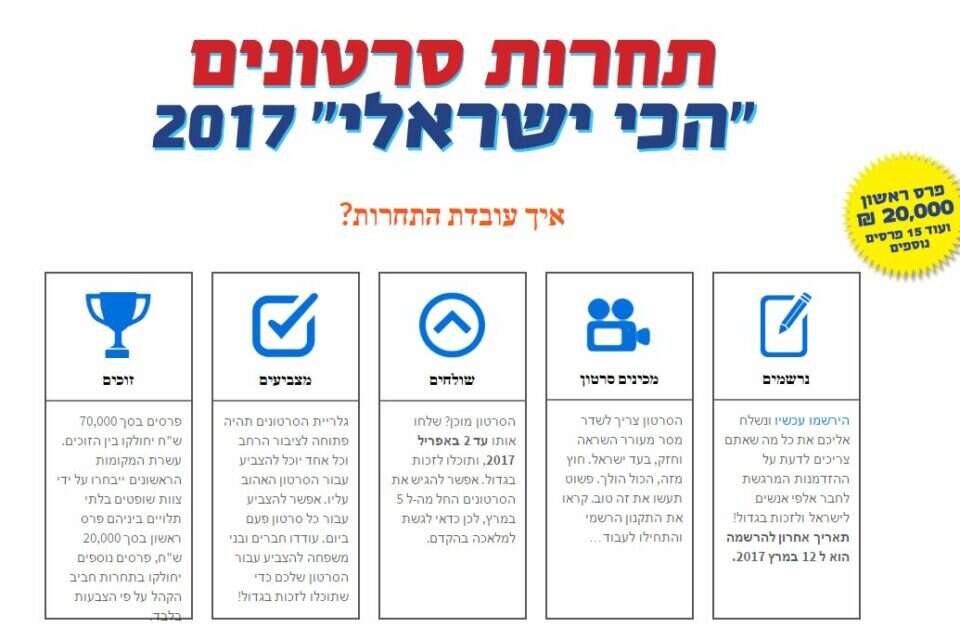 היום נפתחה להצבעה תחרות סרטוני "הכי ישראלי 2017" - תחרות של סרטים שמטרתם הסברה והעברת מסרים חיוביים על ישראל.