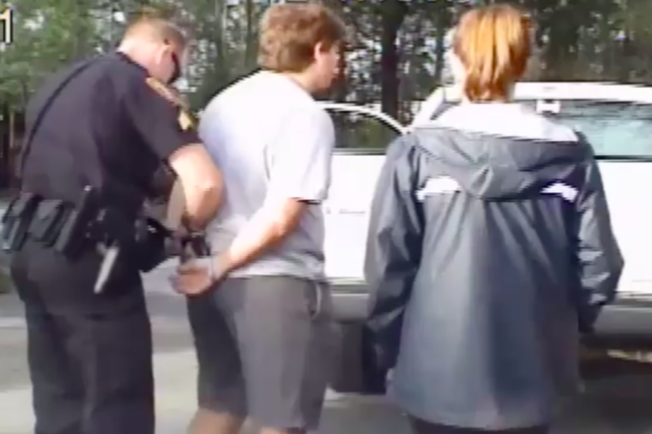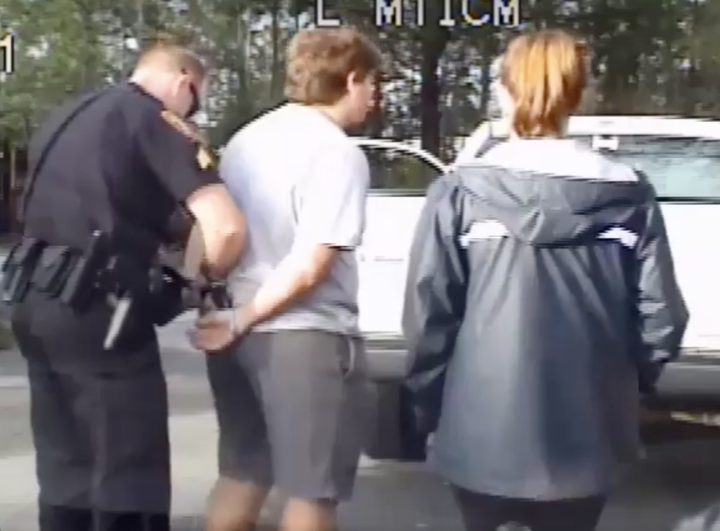 צילום ממצלמת ניידת משטרה שעלה לפייסבוק מציג שוטר ממשטרת ג'ורג'יה כאשר הוא מבצע מעצר של שני צעירים שנסעו ברכב מסחרי בצבע לבן.