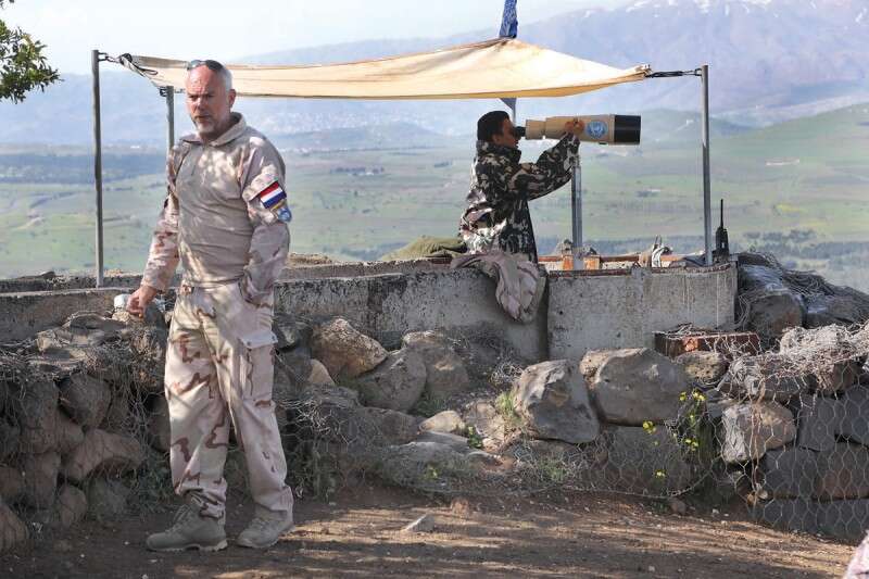 פיצוצים ועשן מעידים על המתרחש במרחק נגיעה. חיילים מהאו"ם בצד הישראלי // צילום: גדעון מרקוביץ