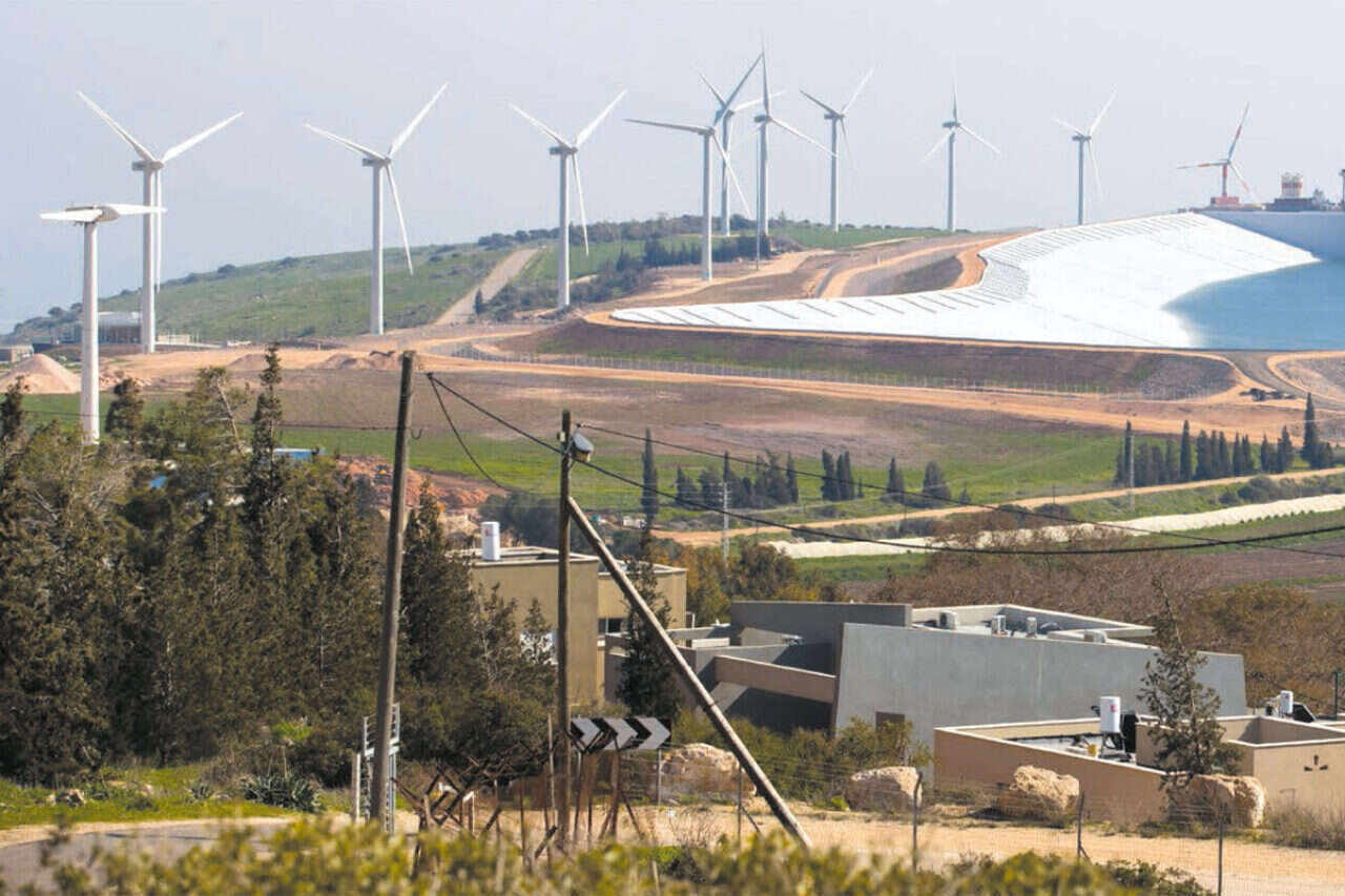 נפילת המים מייצרת 300 מגה־ואט חשמל בתוך 90 שניות. מאגר המים העליון בקיבוץ // צילום: זיו קורן