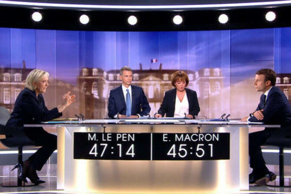 לקראת הבחירות לנשיאות צרפת ביום ראשון הקרוב: המועמד העצמאי עמנואל מקרון וראש מפלגת החזית הלאומית, מרין לה פן, קיימו עימות טלוויזיוני מתוח במיוחד.