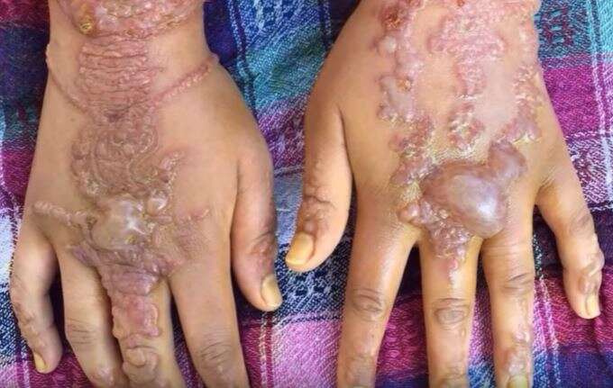 שלפוחיות מזוהמות. ידיה של סופי אקיס