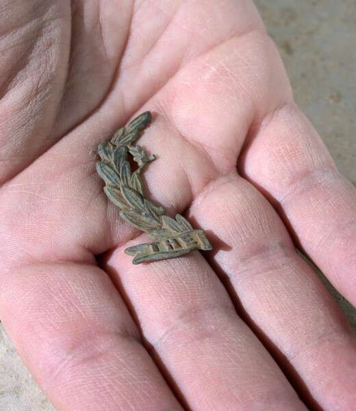 שבר סמל של יחידת נורפולק הבריטית // צילום: קלרה עמית, רשות העתיקות