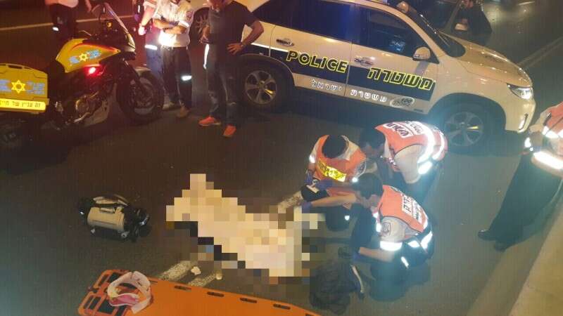 הנער פונה לביה"ח כשהוא מורדם ומונשם. זירת התאונה // צילום: מד"א