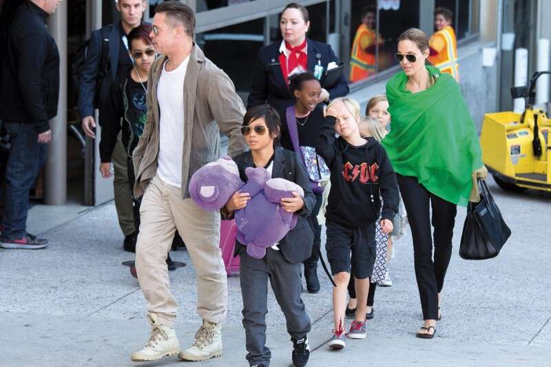 כאן כבר לא גרים בכיף. משפחת פיט־ג'ולי בנמל התעופה של לוס אנג'לס, 2014 // צילום: GettyImages