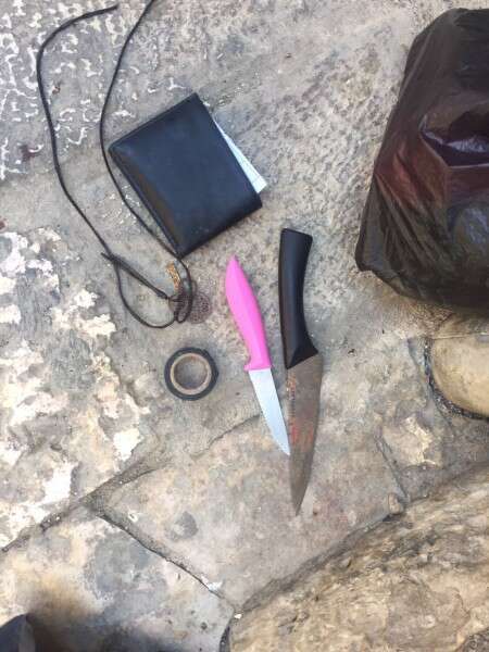 הסכינים שנתפסו בכליו של המחבל // צילום: דוברות המשטרה