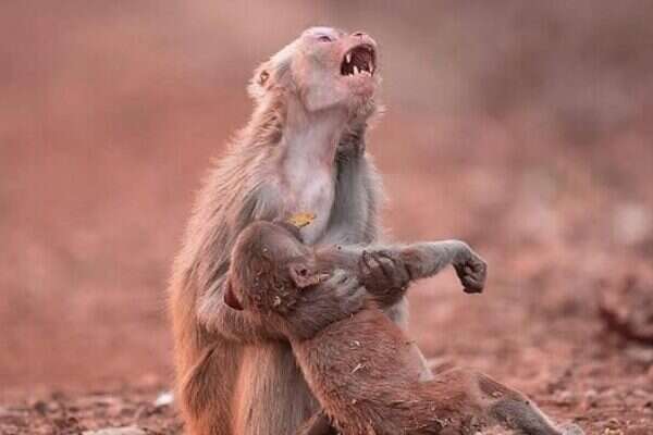 בתמונה החושפת את כאבה הבלתי ניתן לנחמה של קופה המחזיקה את גורה המעולף, הצליח הצלם לחשוף רגע בלתי רגיל של הבעת כאב קופית.