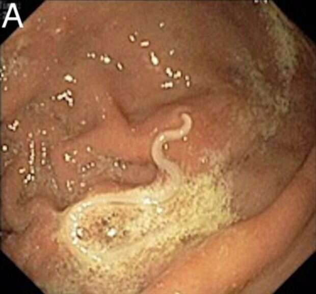 הוסרה באמצעות רשת מיוחדת. התולעת שנמצאה בבטנו של החולה // צילום: Egas Moniz Hospital