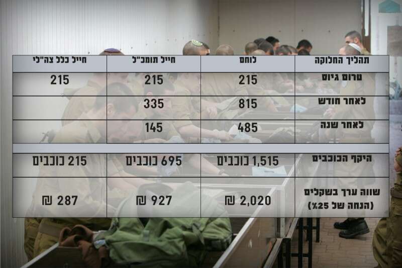 שנה מיום הגיוס יקבלו הלוחמים 485 "כוכבים" ותומכי לחימה יקבלו 145 "כוכבים" נוספים. בסך הכל, יקבלו לוחמים 1,515 "כוכבים" במהלך שירותם, שהם שווי ערך ל-2,020 שקלים (בשל ההנחה של 30%); תומכי לחימה יקבלו בסך הכל 695 "כוכבים", שהם 927 שקלים ואילו חיילים שמתגייסים לתפקידים עורפיים אחרים יקבלו רק 215 "כוכבים" (שהם שווי ערך ל-287 שקלים).