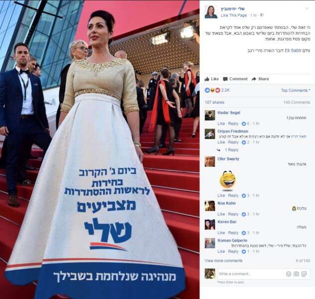 מי שעוד לא נשארה אדישה לאאוטפיט היוצא דופן היא שלי יחימוביץ, שתתמודד ביום שלישי הבא לראשות ההסתדרות. יחימוביץ' זיהתה בשמלה "פוטנציאל" לשלט לקראת הבחירות, והעלתה לעמוד הפייסבוק שלה את תמונה של רגב, כאשר על השמלה נרשם" מצביעים שלי, מנהיגה שנלחמת בשבילך".