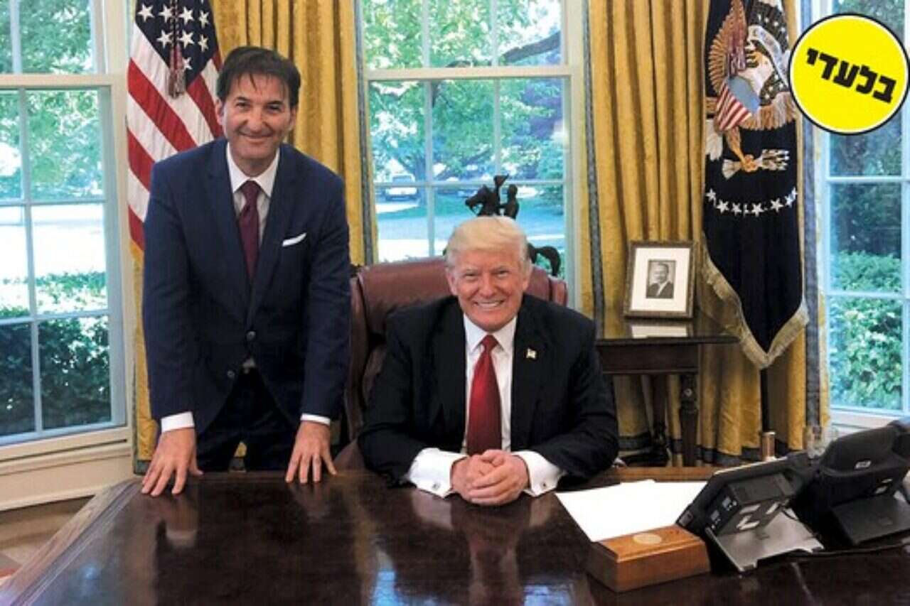 נשיא ארה"ב דונלד טראמפ עם עורך "ישראל היום" בועז ביסמוט בחדר הסגלגל, אמש