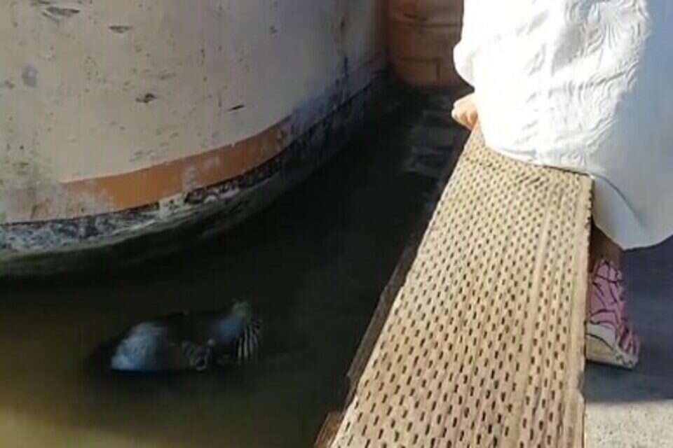 אריה הים ניצל את הרגע ו"שאב" את הילדה פנימה לתוך המים. אך הבהלה ששררה מסביב הסתיימה מהר כשאדם מבוגר (ככל הנראה קרוב משפחתה) זינק למים ותוך שניות השיב את הילדה למבטחים.
