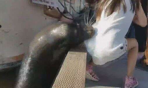 התיירים שהגיעו בשבת למזח בעיירת הדייגים ריצ'מונד שבקנדה, לא חשו לרגע בסכנה מצד היונק החביב שהנעים להם את מצב הרוח. אריה הים שהגיח החוצה לאוויר, תועד ע"י תייר, ובמשך שניות ניתן היה להבחין בילדה על קצה המזח שמשתעשעת עמו ואף מפנה כלפיו את הגב.