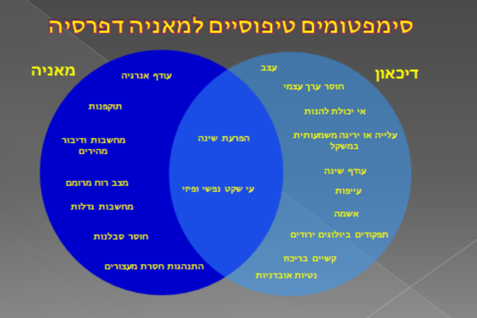 - אישה בת 48 שמספרת על שילוב משמעותי של תקופות דיכאון עם תקופות טובות מאוד אבל קצרות מאוד.