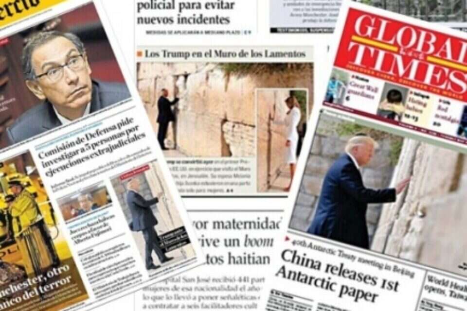U.S. President Donald Trump's visit to the Western Wall in Jerusalem on Monday was pictured on the front pages newspapers all over the world. The somber setting, with Trump silently looking at the ancient stones, stood in stark contrast to the often unscripted demeanor of the 45th president. Trump says he is a religious man but has rarely put this on display. Britain's Independent had the picture in the center of its online edition's home page, with a header "Trump scales a diplomatic wall." The Wall Street Journal ran a caption saying that Trump is the first sitting president to visit the Western Wall but also noted that White House officials have refused to say whether they believe the site lies within Israeli territory, in keeping with the long-standing American view that the status of Jerusalem should be determined through peace talks. Coverage of the Israel visit by the U.S. media was largely overshadowed by the recent developments surrounding the ongoing investigation into the alleged ties between Trump's advisors and Russia during the election. A panel on MSNBC's "Morning Joe" agreed that Trumps' speech in Saudi Arabia was a major success because of Muslim leaders' willingness to combat the funding of terrorism. The panelists said that Trump successfully rallied the Sunni leaders, who were disappointed by Obama and considered his rapprochement with Iran a threat to the region's stability. The show's host Joe Scarborough said Obama's posture in the Middle East "united the Sunni world and moved them closer to Israel and the United States than any time since the early 1950s." According to Washington Post columnist David Ignatius, who was also on the panel, Trump's visit to the region stood in stark contrast to Obama's foreign trip to this part of the world several months into his first term. "The theme of Obama's trip [in 2009] was 'I am going to reach out to our enemies'; the theme of Trump's trip -- 'I am going to embrace our friends,'" he said. Richard N. Haass, president of the Council on Foreign Relations, said the first part of the trip, the visit to Saudi Arabia and Israel, was the easy part, but now the president will have to face a less friendly audience, European leaders, who largely prefer his predecessor. Meanwhile the Washington Post highlighted the fact that Trump arrived on what was the first direct flight from Riyadh to Tel Aviv. "Why Trumps flight from Saudi Arabia to Israel is a big deal ," ran the headline of that piece, which went on to explain that the symbolic development could potentially help improve relations between the two countries. The New York Times also noted that first lady Melania Trump was keeping a relatively high profile during the visit. "Unusual place for a presidents family on a foreign trip: center stage," ran the headline. Inside, the piece said that the first lady visited children at a Jerusalem hospital and that Ivanka Trump stepped in for her father when he was too tired to participate in an online Twitter forum in Saudi Arabia. Trump's picture at the Western Wall was also the butt of jokes in the opening monologues in late-night TV shows in the United States, with hosts drawing comparisons between the ancient site to Trump's proposed wall on the American-Mexican border. Stephen Colbert, the host of the "The Late Show with Stephen Colbert," said that upon arriving at the wall, Trump told the Israelis, "Nice wall, how did you get Mexico to pay for it-" Another late-night host, Seth Meyers jokingly said that after visiting the wall, Trump said, "The wall was the reason Israel doesnt have any Mexicans."