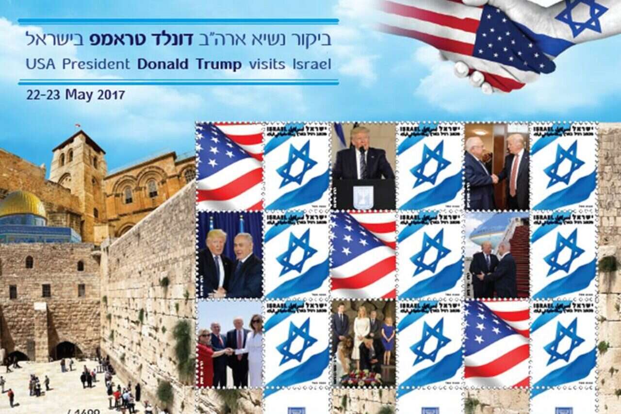 כבר מתגעגעים לביקור של טראמפ בישראל? השירות הבולאי דאג עבורכם לגיליון בולים מיוחד כמזכרת - במהדורה מוגבלת • בנוסף: חברות תיירות ממנפות את ביקורו של טראמפ למשוך תיירים לירושלים