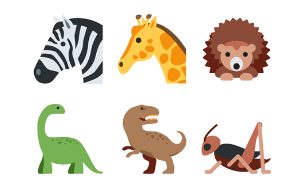 בגזרת בעלי החיים התווספו 6 אימוג'ים חדשים הכוללים: זברה, ג'ירפה, קיפוד, שני סוגי דינוזאורים ואפילו צרצר.