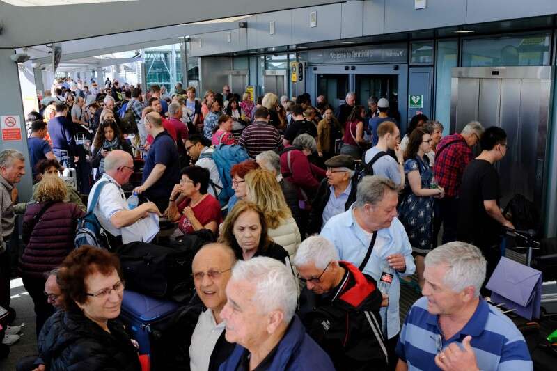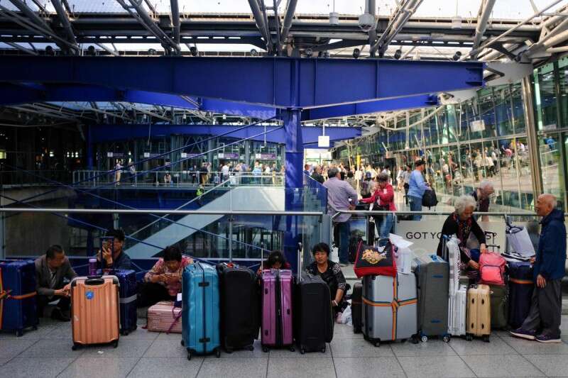נפל עליהם תיק. נוסעים מיואשים בהית'רו // צילום: אי.אף.פי