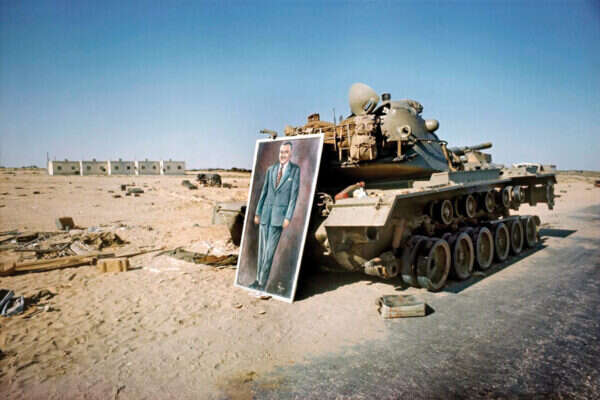 התצלום הבא צולם בסיני. טנק ישראלי בהפוגה בין הקרבות, ועליו נשענת כרזת ענק של נאצר. "שלל מלחמה", אומר בר־עם. מיד אחר כך בר־עם בירושלים, בדרך לשער האריות, בשעת הקרבות.