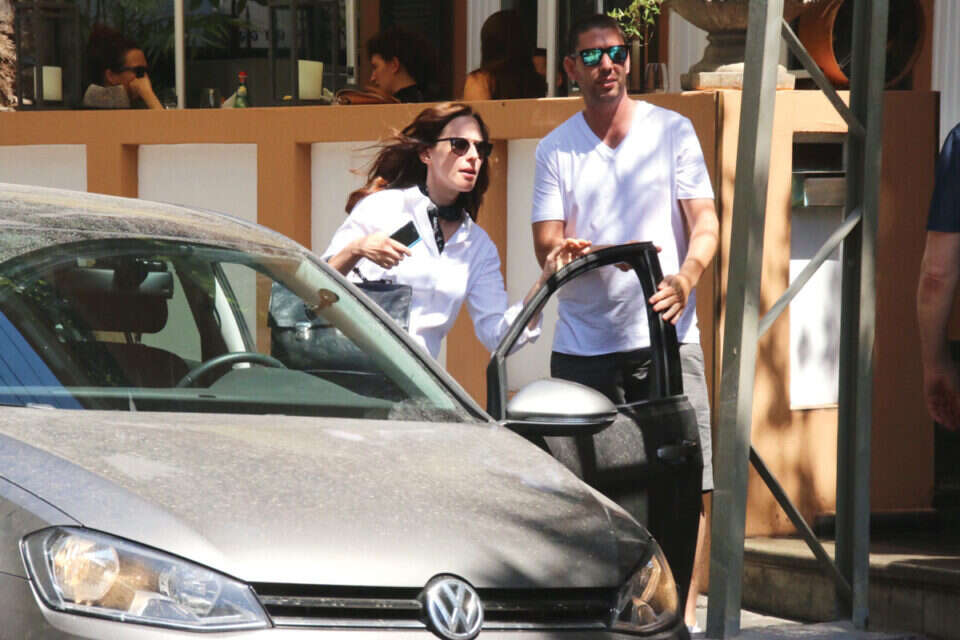 √ יום ראשון בבוקר בדרום תל אביב: מייקל לואיס והחדשה שלו, השחקנית סוראייה טורנס, מפגינים חיבה בארוחת בוקר.