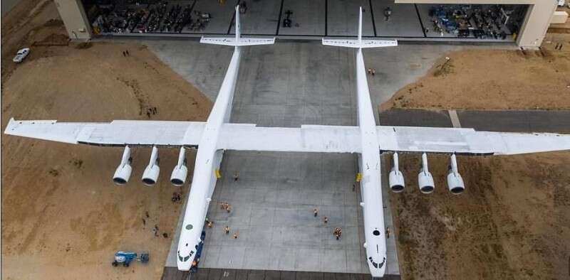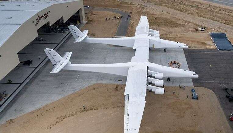 המטוס העצום יקרא Stratolaunch והוא מיועד לשאת עד שלושה לוויינים במקביל. טיסת הבכורה של המטוס בעל ששת המנועים מתוכננת להתבצע רק בעוד כשנה וחצי, אך לאחרונה הוא עבר שלב מאוד משמעותי בבנייתו כאשר הוסרו הפיגומים לקראת בדיקת המנועים בנסיעה.
