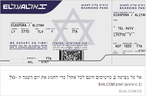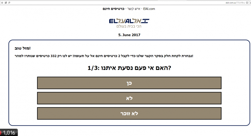 ביממה האחרונה מופצת מודעה בפייסבוק המציעה כרטיס טיסה זוגי בחינם וללא הגרלה בחברת "אל על" לרגל חגיגות 70 שנה לחברת התעופה הישראלית.