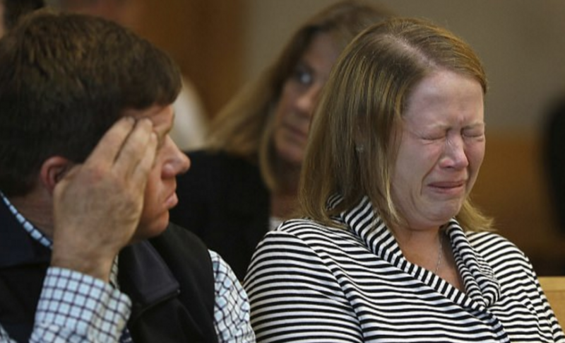 בני משפחתו של קונרד רוי בבית המשפט בזמן הצגת תמונות בבמקום התאבדותו // צילום: אי.פי