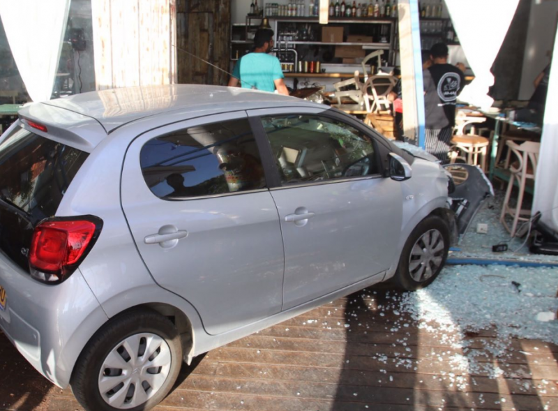 הרכב לאחר ההתנגשות במסעדה // צילום: הרצי שפירא