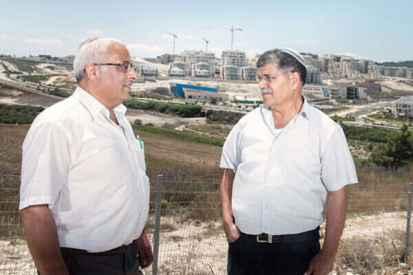 "רואים במושבה משפחה". מימין: אייל רום, מנכ"ל החברה הכלכלית של המועצה האזורית מגידו, ומושיקו אריה מיקנעם המושבה // צילום: אייל מרגולין