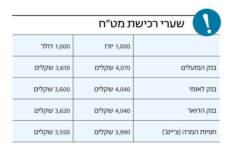 ** לא כולל עמלות המרה שונות בבנקים בלבד