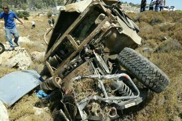 תאונה אחת אירעה באזור אדורה שבהר חברון, שם התהפך האמר צבאי והביא לפציעתם באורח קל של שני חיילי צה"ל. השניים פונו לקבלת טיפול רפואי בבית החולים הדסה עין כרם בירושלים. מצה"ל נמסר כי נזק נגרם לרכב שהתהפך. מתחקיר ראשוני עולה כי מול ההאמר שהתהפך היום הגיע רכב פלשתיני שנסע על קו לבן, גרם להאמר לסטות ימינה ולהתהפך.