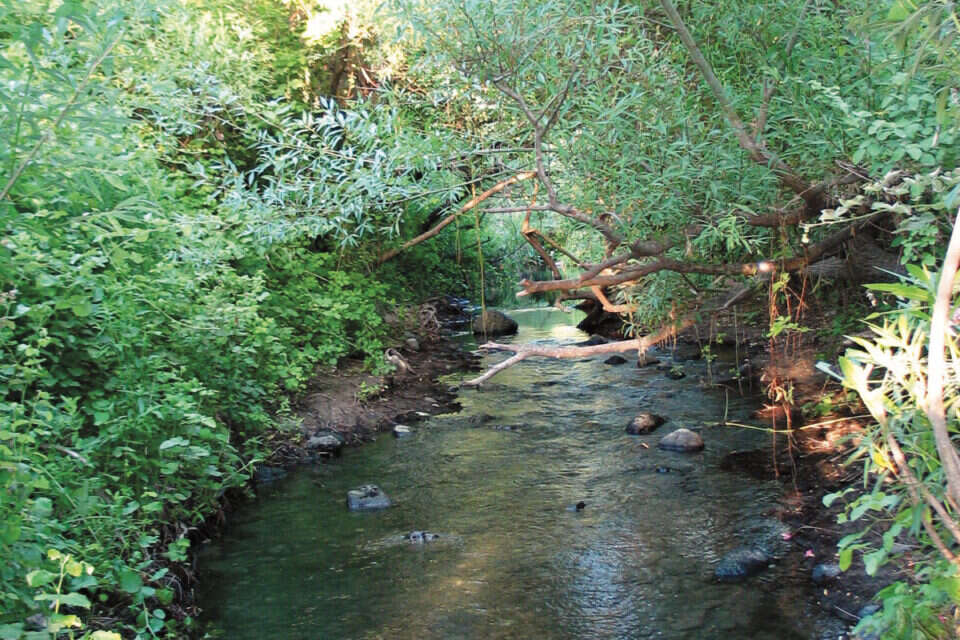 בסוף הירידה נכנסים אל הפארק ויורדים אל אמת מים שאורכה 600 מטר. אפשר ללכת גם בתוך אמת המים, בין צמחייה וטבע.