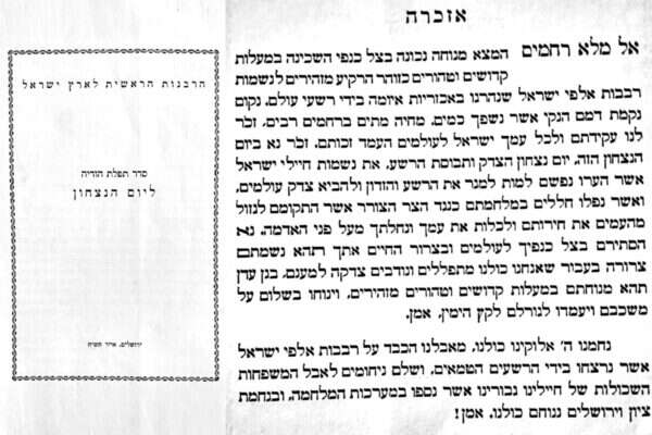 בבית המכירות "ירושלים של זהב" ציינו כי "נוסח האזכרה הוא ייחודי, מעניין ואינו מוכר". באזכרה הייחודית נכתב: "אל מלא רחמים, המצא מנוחה נכונה בצל כנפי השכינה במעלות קדושים וטהורים כזוהר הרקיע מזהירים לנשמות רבבות אלפי ישראל, שנהרגו באכזריות איומה בידי רשעי עולם. נקום נקמת דמם הנקי אשר נשפך כמים". לאחר מכן מודפס נוסח ארוך ומרגש של ברכת הודיה ליום הניצחון על הנאצים: "ביום זה, יום ניצחונם המזהיר של ממלכות הברית נגד כוחות החושך והעריצות... ואתה בעוז גבורתך אימצת את רוחם וכוחם של צבאותיך חילות ממלכת בריטניה הגדולה ובנות בריתה: ממשלת ארה"ב הנישאה ומדינת הסובייטים האדירה, שבמערכותיהם נמצאים חלוצי גיבורי עמך ישראל, שהתגייסו למלחמה נגד אלה אשר חירפו שמך ותורתך ולנקום נקמת דם עמך השפוך. ברוך אתה ה' אלוקינו מלך השופט את עולמו בשלום וצדקה