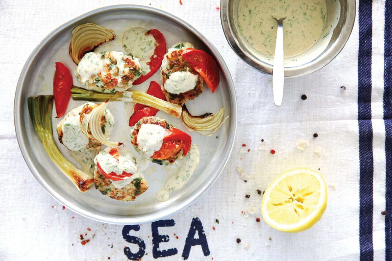 4. יוצרים קבבים מתערובת הדג, מחממים מחבת כבדה עם מעט שמן זית ומשחימים את הקבבים על אש גבוהה במשך כ־4 דקות מכל צד, עד שכל קבב שחום מבחוץ ועשוי מפנים.