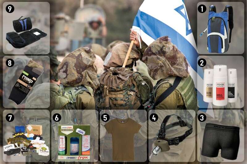 1. תיק גב שלוקר - גרופון, מחיר: 79 ש', 2. דאודורנט - AXE מחיר: 15-13 ש', 3. תחתונים מנדפי זיעה - ביג דיל, מחיר: 79 ש', 4. פנס ראש אומגה - למטייל, מחיר: 60 ש', 5. 4 חולצות למתגייסות - H&O, מחיר: 99.90 ש', 5.ערכת רמבו - אתר YOH!, מחיר: 435 ש', 6. מארז אקילן - כצט, מחיר: 59.90-49.90 ש', 7. גרביים - דלתא וקופרון, מחיר: 40 ש' (באתר: 30 ש') תיק רחצה - ריקושט מחיר: 49 ש'
