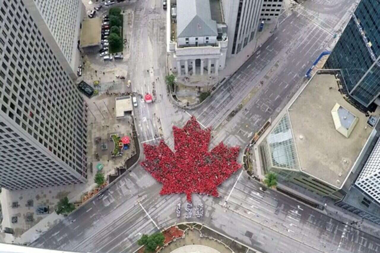 ב־1 ביולי 1867 נוצרה אומה ששמה קנדה, ושלשום יצאו המוני אזרחים קנדים לחגוג 150 שנה לאירוע. בעיר וויניפג הגיעו אלפי אנשים לבושים באדום למרכז העיר כדי ליצור (בתמונה) את מה שתואר כ"עלה המייפל החי הגדול ביותר".