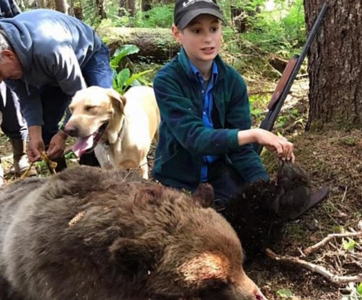 אליוט האמיץ עם הדוב המת // צילום: מתוך הפייסבוק