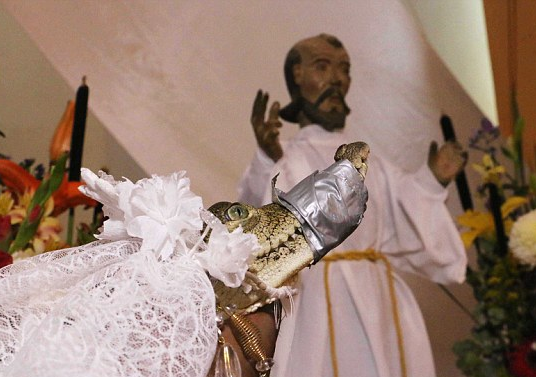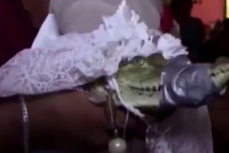 טקס החתונה הזה לא היה שגרתי, כשלכלה סתמו את הפה עם נייר דבק. זה נעשה בעיקר כדי למנוע ממנה לאכול את האורחים – צעד מתבקש כיוון שהכלה היא תנינה צעירה בת 3, העונה לשם מריה איזבל, והחתן המאושר היה לא אחר מאשר ראש העיר של סן פדרו חומלולה שבמקסיקו.